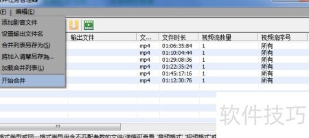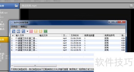 5、 选择多个视频,进入工具中的合并任务管理器,打开窗口后添加所需文件至列表,确认无误即可启动合并操作。