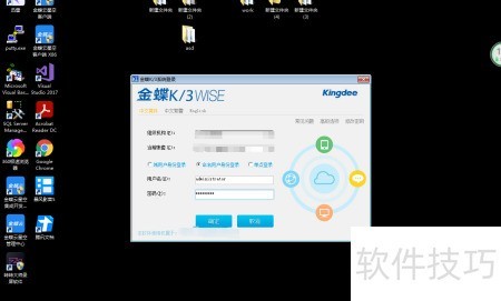 1、 在电脑上打开金蝶K3 WISE客户端,选择账套并输入用户名和密码登录。