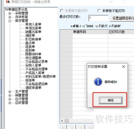 7、 财务软件中设置单据打印次数的操作步骤如上。