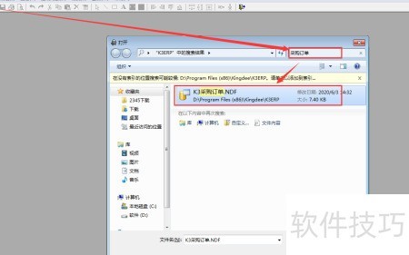 4、 进入金蝶安装目录,点击对应文件夹,查找并打开采购订单的套打文件,以进行后续操作。