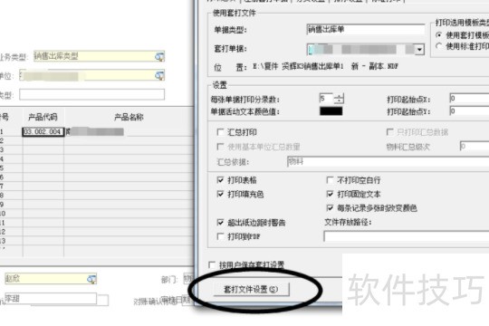 6、 选择待打印的销售出库单,进入文件菜单点击套打设置,在弹出窗口中选取注册套打单据并进行浏览操作。