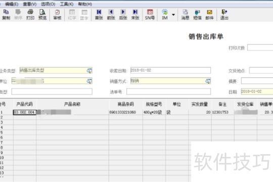 5、 删除所有空格后,可选择绘图工具自行设计所需订单模板的样式,比如我们绘制的销售出库单示例。完成后点击预览查看效果,若符合预期,即可点击文件菜单中的保存选项进行保存,确保模板格式准确无误且满足实际使用需求。