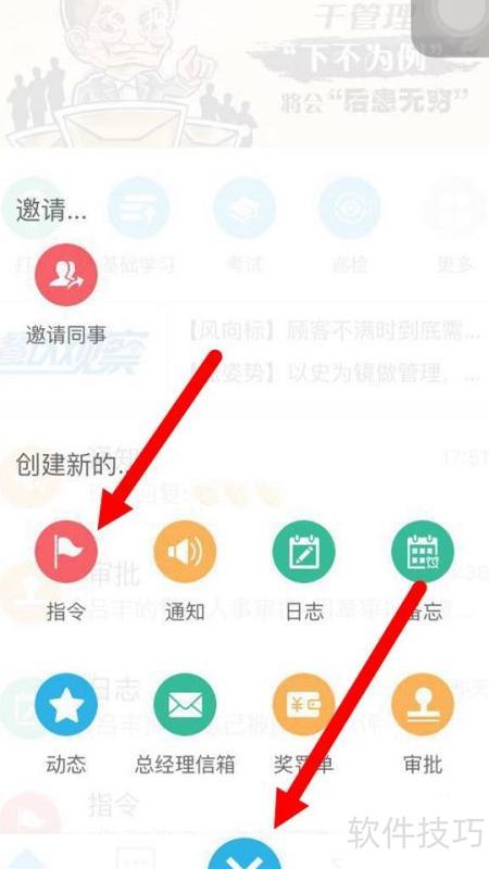 2、 点击下方平台的+号,选择创建板块中的指令选项即可进入。