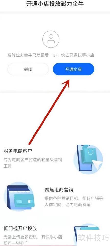 3、 进入磁力金牛,选择开通小店即可。