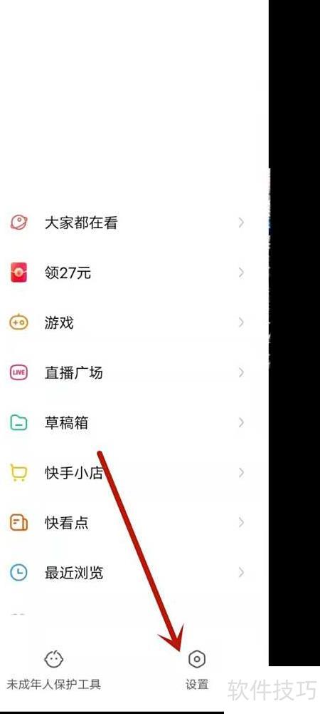 1、 打开快手App,点击左上角三条杠进入更多选项,选择设置。