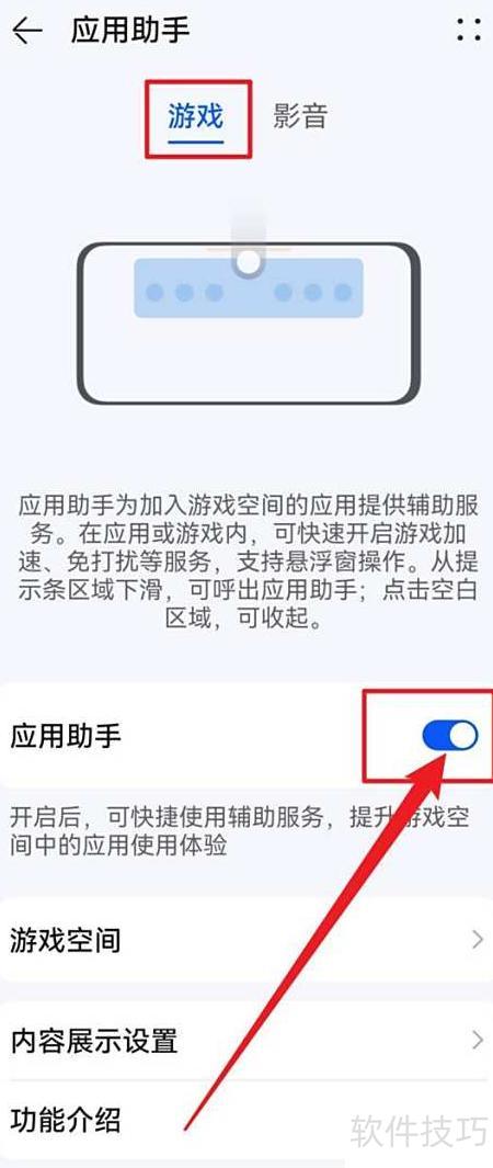 3、 进入应用助手页面,点击标签,打开右侧的开关即可启用功能。