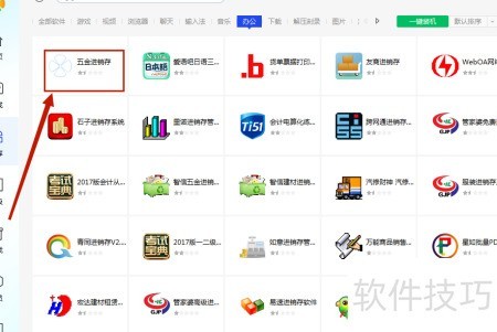 3、 在驱动软件库中找到五金进销存,点击左键即可完成一键安装。