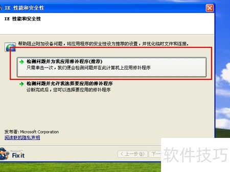 3、 软件会提示我们选择一个选项,建议选推荐的选项,点击下一步后,系统将自动检测问题,并在发现问题时提供相应的解决方法。