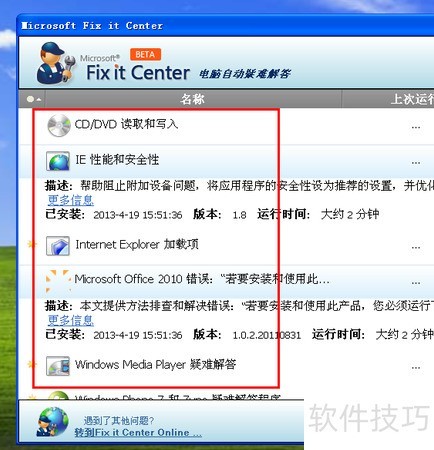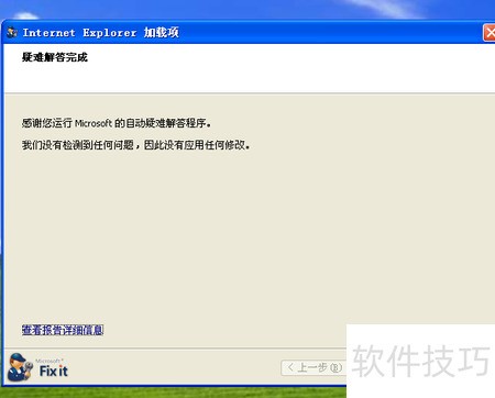 4、 当系统出现问题时,软件会提示IE存在的具体故障,并提供对应的修复方案。今后若遇到文件夹、打印机、Office、IE或应用程序安装异常等情况,可直接运行相应的修复工具进行处理。这种方法操作简便,能有效解决多种常见系统问题,建议用户在遇到类似故障时优先尝试使用专用修复程序,以快速恢复系统正常功能。