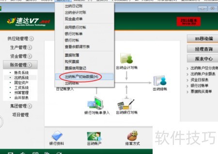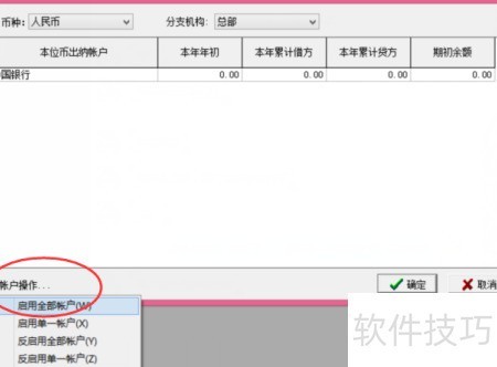 6、 位于出纳模块的账户初始数据页面左下角,可启用账户。