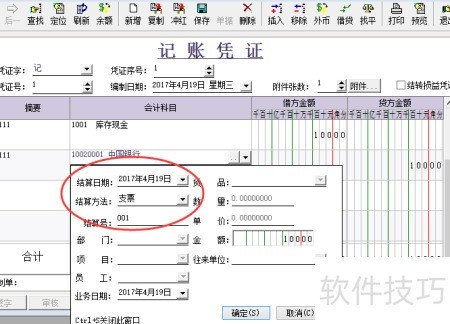 9、 领用后,在制作凭证时,于辅助核算中选择支票作为结算方式,并输入相应结算号,即为票据号码。