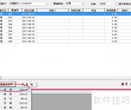 15、 点击票据使用并核销,核销后无法修改或删除。