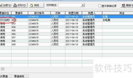 12、 返回票据管理,查询001票号时,系统将提示该票据已通过凭证完成支付。