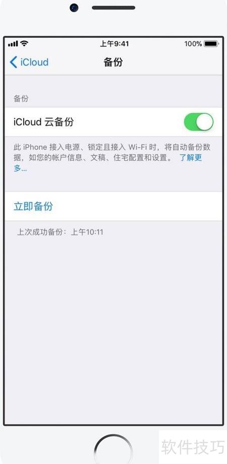 4、 可前往设置>iCloud>iCloud云备份查看备份进度并确认是否完成。在立即备份选项下方,会显示最近一次备份的具体日期和时间,便于您掌握备份状态。