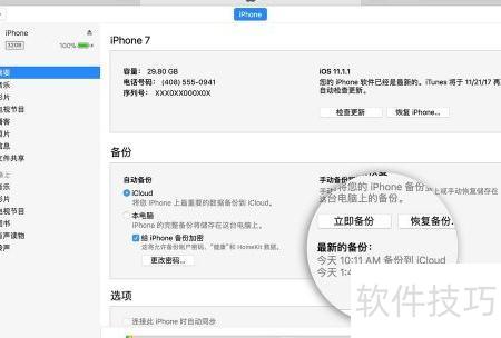 11、 备份完成后,进入 iTunes 的摘要页面,查看最新的备份显示的日期和时间,即可确认备份是否成功完成。
