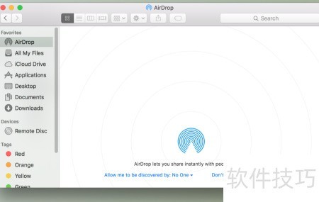 1、 打开Mac的Finder,点击侧边栏中的AirDrop选项。