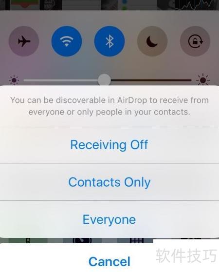 4、 上滑iPhone屏幕,开启功能栏,点击AirDrop即可使用。