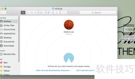 6、 在Finder的AirDrop中,按住鼠标左键将照片拖拽至iPhone对应的头像(如篮球图标),松开即可完成传输。