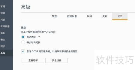 7、 打开Firefox设置,找到高级选项,导入之前导出的证书文件。