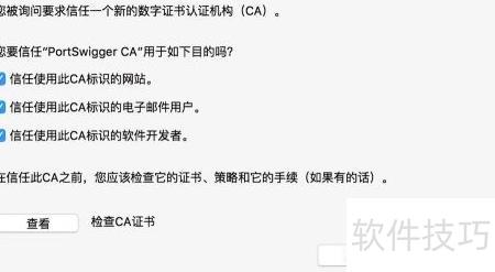 1、 启动Burp Suite抓包工具,在浏览器地址栏输入localhost:8080,使用FireFox浏览器访问后,页面将显示相应界面,找到并点击页面中央的CA证书选项即可继续操作。