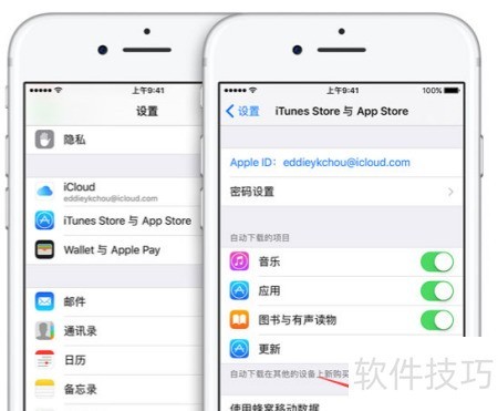 8、 在主屏幕点击设置图标,进入后选择App Store,即可开启应用、图书及有声读物的自动下载功能。通常建议关闭红色方框内的选项,以节省网络流量。
