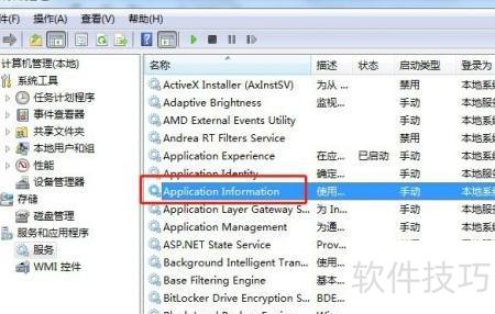 5、 在服务列表中定位Application Information项,随后进行双击操作。
