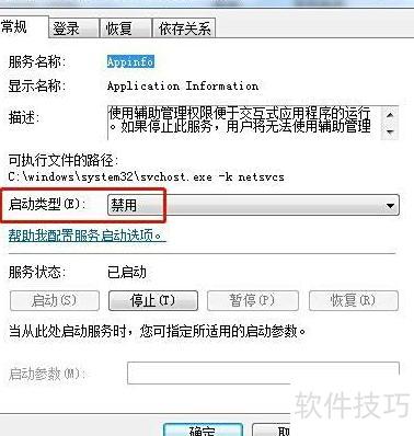 在Win7系统中,通过运行services.msc找到Application Information服务,右键选择属性,将启动类型改为禁用即可。