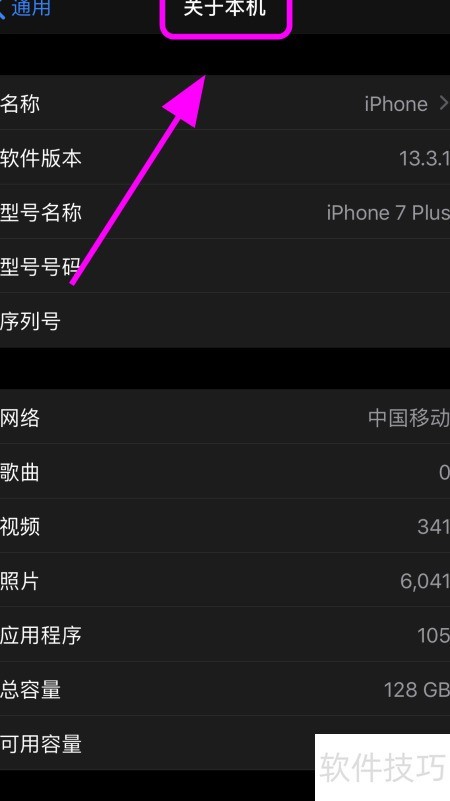 5、 打开iPhone设置,进入关于本机页面查看详细信息。