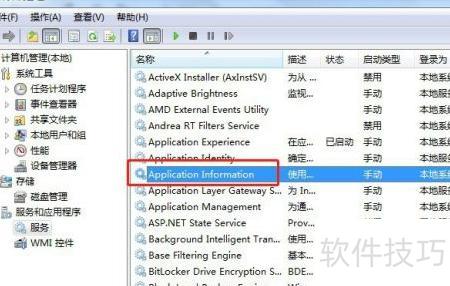 在Win7系统中,通过运行services.msc打开服务管理器,找到Application Information服务并启动即可。