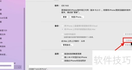 mac更新系统后不再提供iTunes,需通过Finder备份iPhone。连接设备后,在Finder中选择手机图标,点击立即备份即可完成操作。