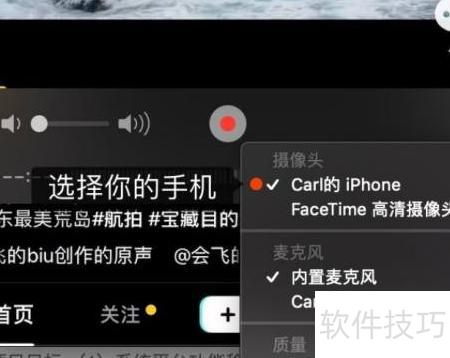 将iPhone与Mac连接后,打开系统自带的,选择新建影片录制,即可实现手机屏幕在电脑上的实时投屏显示。