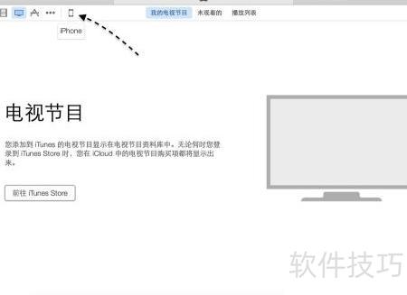 8、 在 iTunes 界面中,点击代表 iPhone 的设备图标,位置所示。
