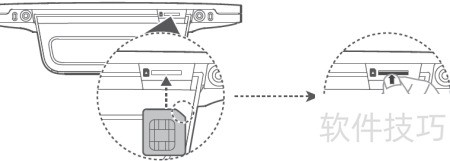 2、 将micro-SIM卡芯片面朝上、缺角向内,按图示方向插入卡槽即可。
