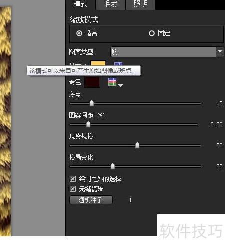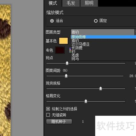5、 第五步:选取豹纹样式,调整参数生成纹理。