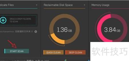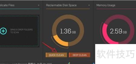 1、 点击红色空心箭头指向的图标,再启动图二中的清理软件即可。