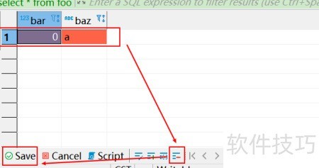 6、 所示,标号①的图标用于执行单条SQL语句,标号②的图标则用于执行多条SQL语句。