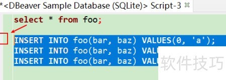 1、 所示,点击 DBeaver SQL 编辑器左侧的执行 SQL 语句按钮,向数据库表中插入三条记录。