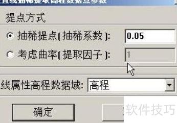 6、 系统将弹出设置线抽稀点参数对话框,需在线属性中选择包含高程值的字段,完成参数配置后点击确定按钮,操作示意所示。