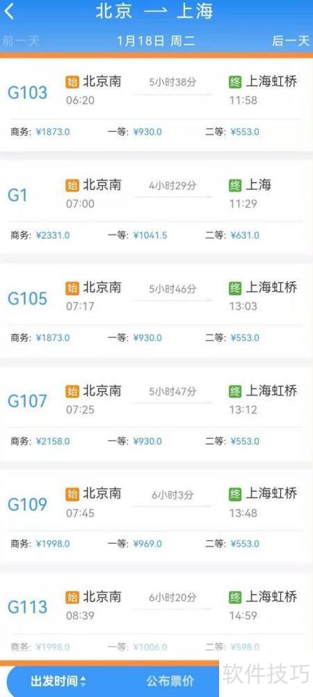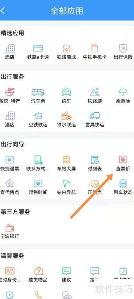 打开软件,点击更多功能中的查票价选项,输入出发地和目的地,确认后即可快速查询火车票价信息。