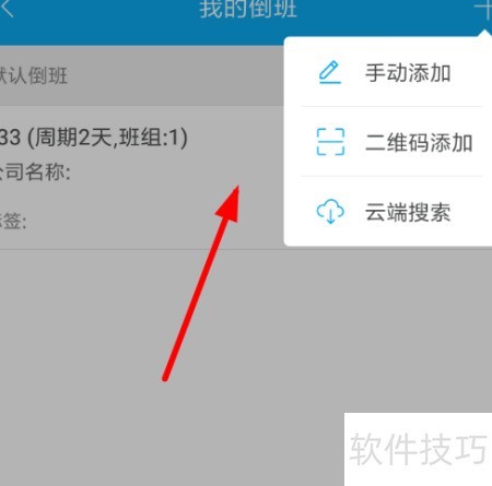2、 在倒班页面右上角点击+号,从弹出菜单中选择手动添加进行编辑设置。