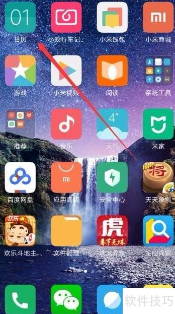 1、 打开小米手机,点击日历图标即可进入应用。