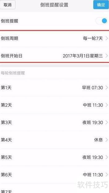 6、 设定每轮倒班周期及起始日期。