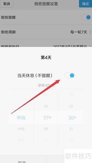 8、 若某日休息不上班,只需进入设置页面开启当天休息功能即可。
