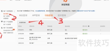 4、 进入联盟,依次点击推广管理、推广位管理、导购推广位,找到新建推广的PID并复制。