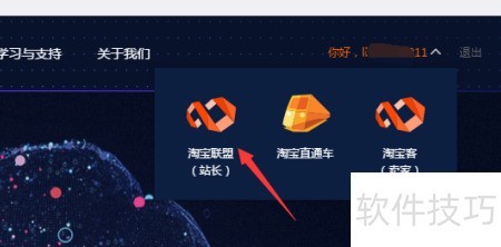 2、 访问网页并登录阿里妈妈主页,若无账号可使用淘宝账号注册。登录后选择淘宝联盟选项,跳转至联盟主页即可开始操作。