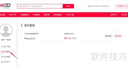 5、 登录淘客助手首页,进入个人中心,在左侧菜单选择授权管理,将淘宝联盟账号与淘客助手完成绑定授权操作。
