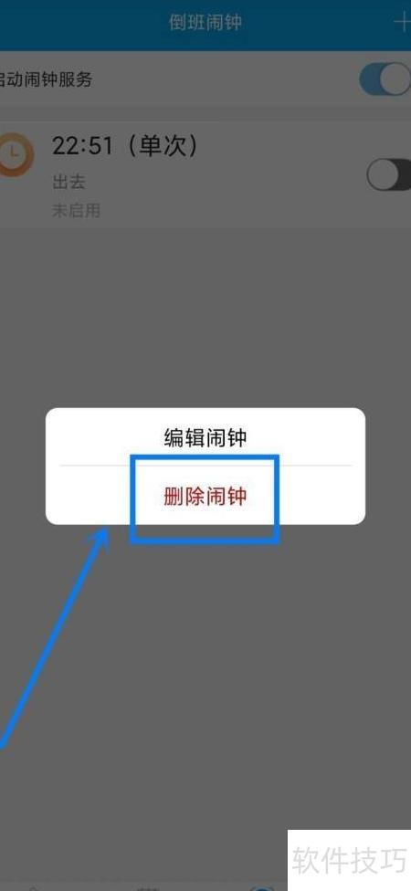 2、 长按需删除的闹钟,进入倒班闹钟页面操作。