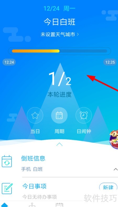1、 在倒班助手中修改班组信息时,应先点击首页上方图标,进入倒班详情页面进行操作。