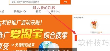 1、 先用已实名认证的淘宝账号登录阿里妈妈,再按照图片指引,登录淘宝联盟。