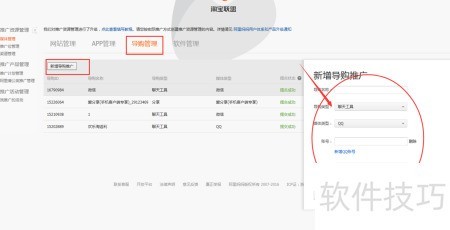 3、 找到后点击新增导购管理,按需设置推广位,如QQ、微信等,填写信息后点击确定即可完成。